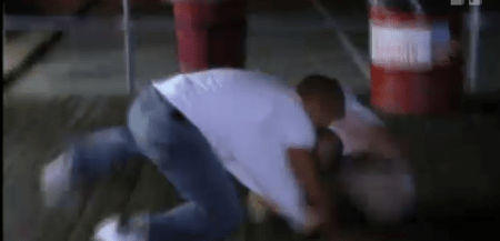 The creepy guy keeps telling them to go back to New York. Usually I’m in favor such behavior (telling New Yorkers to leave my shore), but this guy is just plain weird and obviously looking for a fight. When Ronnie and Sammi decide to leave, the guy and his girl follow them onto the boardwalk. He continues to talk shit, but Ronnie just wants to get away from him instead of fighting. Sammi, on the other hand, is talking shit back to the guy. Ronnie is begging her to stop. Since she won’t keep her mouth shut, Ronnie pushes her away, and the creepy guy accuses him of abusing her.