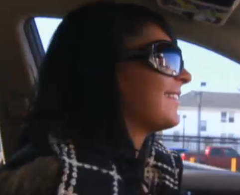 Meanwhile, Snooki introduces us to, as she describes him, her “amazing gorilla juice-head” boyfriend. The guy looks eerily similar to her, as he is short, round, and orange. Just give him an Elvira wig and he could be her stunt double. She then goes on an idiotic political/racist rant about how Obama put a 10% tax on tanning just because of her, and how McCain wouldn’t have done that because he’s pale and would probably want to go tanning (even though he’s had skin cancer), and how Obama obviously doesn’t have to worry about being tan. Wow, how could one person be so dumb? But my disgust turns back into love in the next scene, as Snooki adorably gets into a giant SUV and holds down the button to push the seat forward for what seems like forever. ♥ ♥ ♥