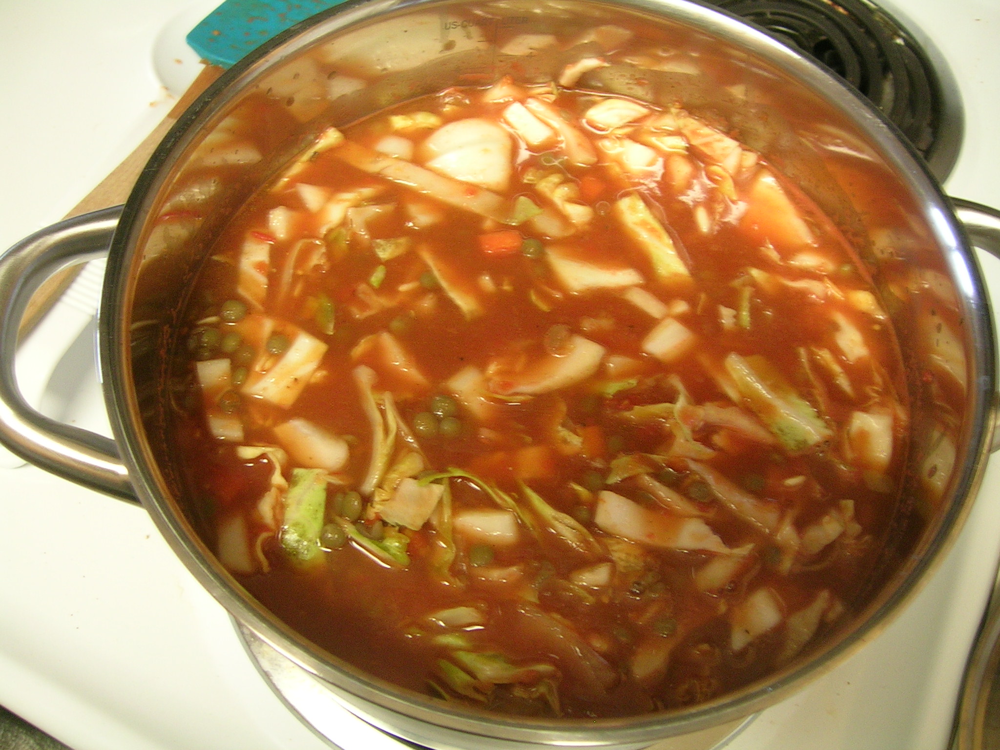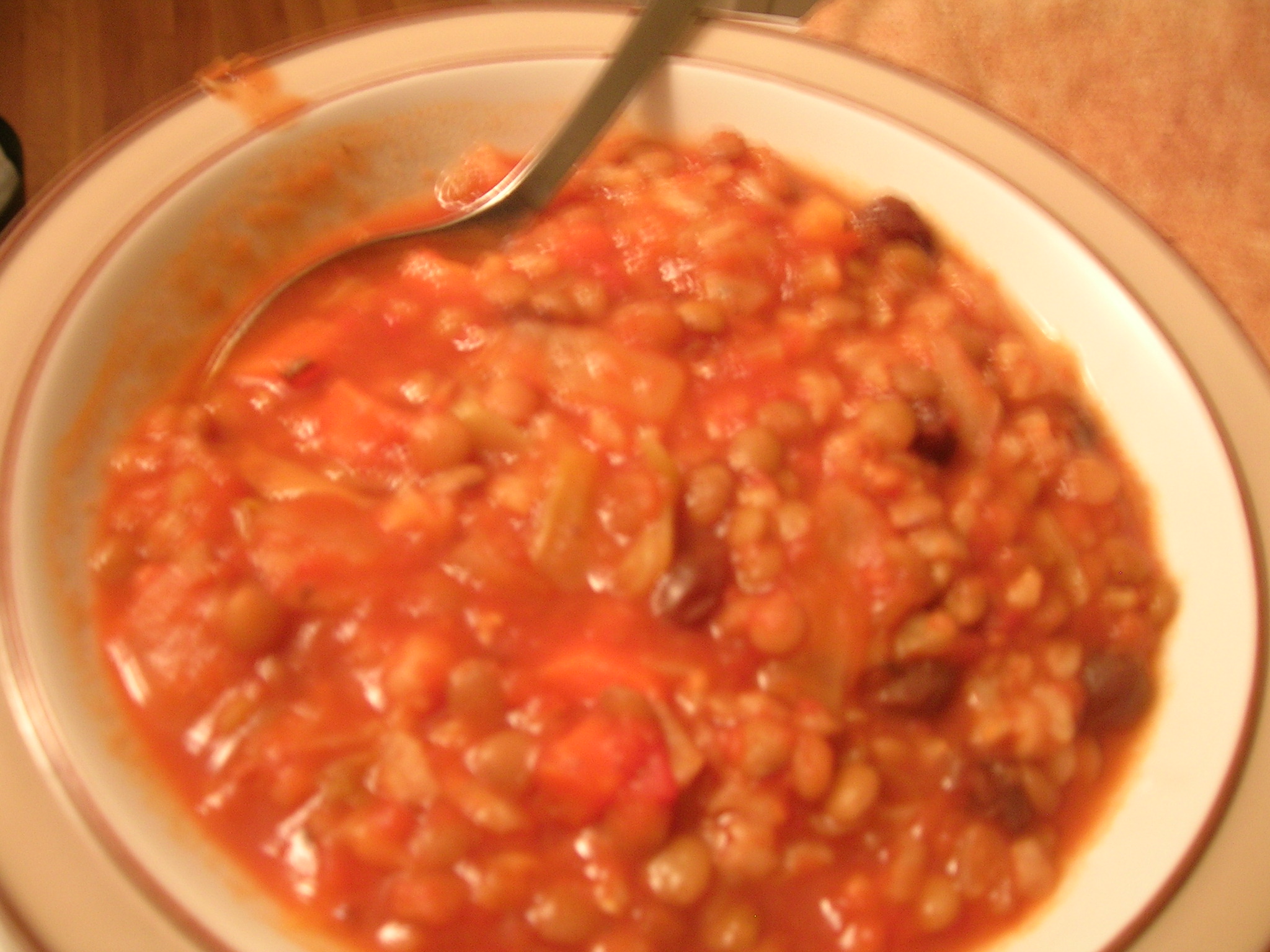 Hard to tell from the picture, but that’s a soup made with the holy tomatoes, lentils, cabbage, and raisins. Yes, I realize I’m probably the only twenty-something who likes lentils, cabbage, and raisins. Anyway, the soup was delicious, and I owe it all to my can of Jersey tomatoes!