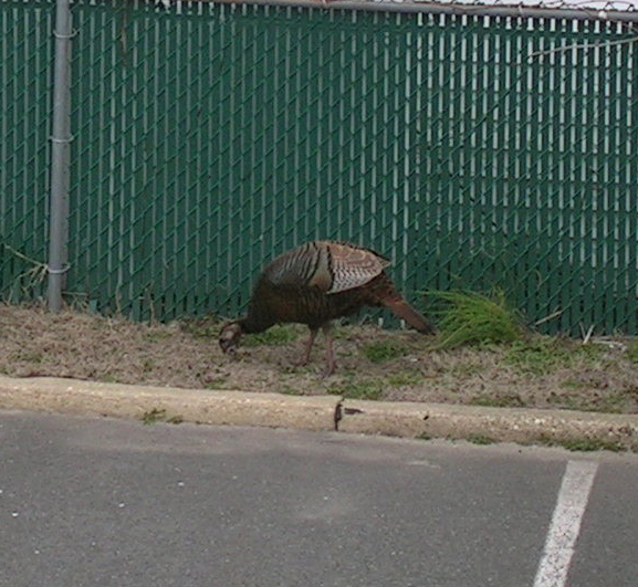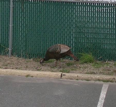 Yeah, that’s a wild turkey.  Right in my parking lot 100 feet from the beach.  There aren’t any woods for at least a couple of miles from here.  No clue where it came from or how it ended up in Belmar.  All I know is that it didn’t stay too long.  After I took the picture and put my camera away, it was gone.